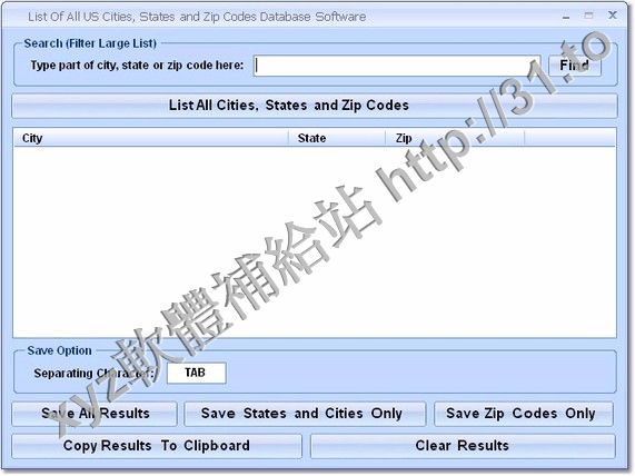 List Of All US Cities States and Zip Codes Database v7.0 英文正式版(郵政編碼查詢軟體)